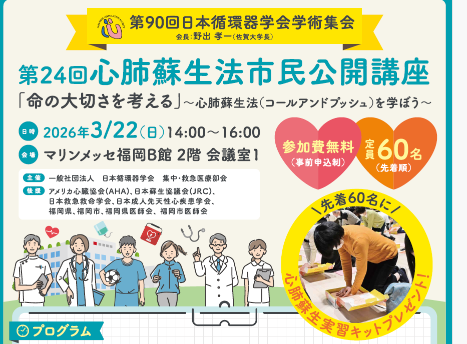 【第24回心肺蘇生法市民公開講座】開催のお知らせ(第90回日本循環器学会学術集会)